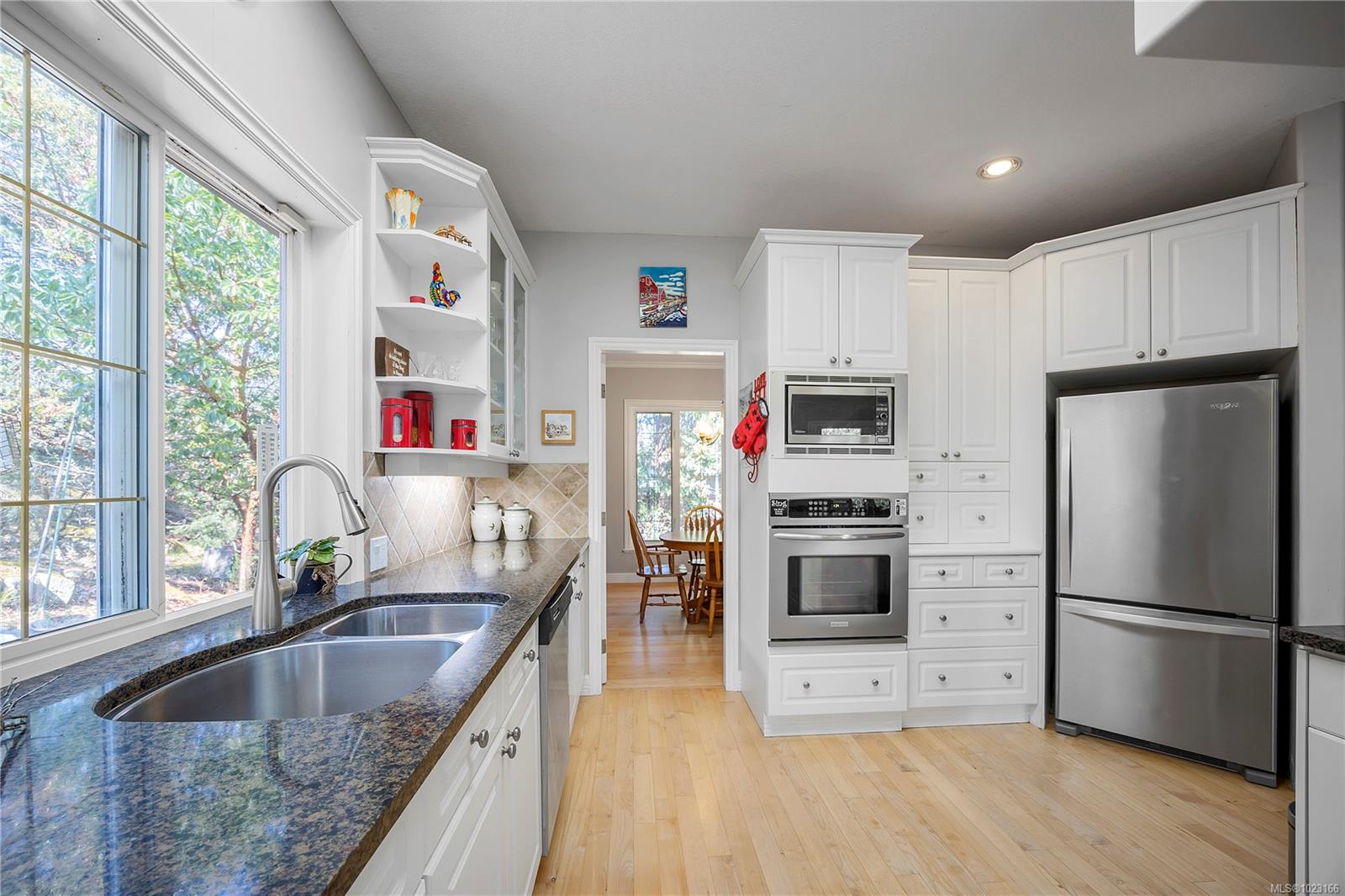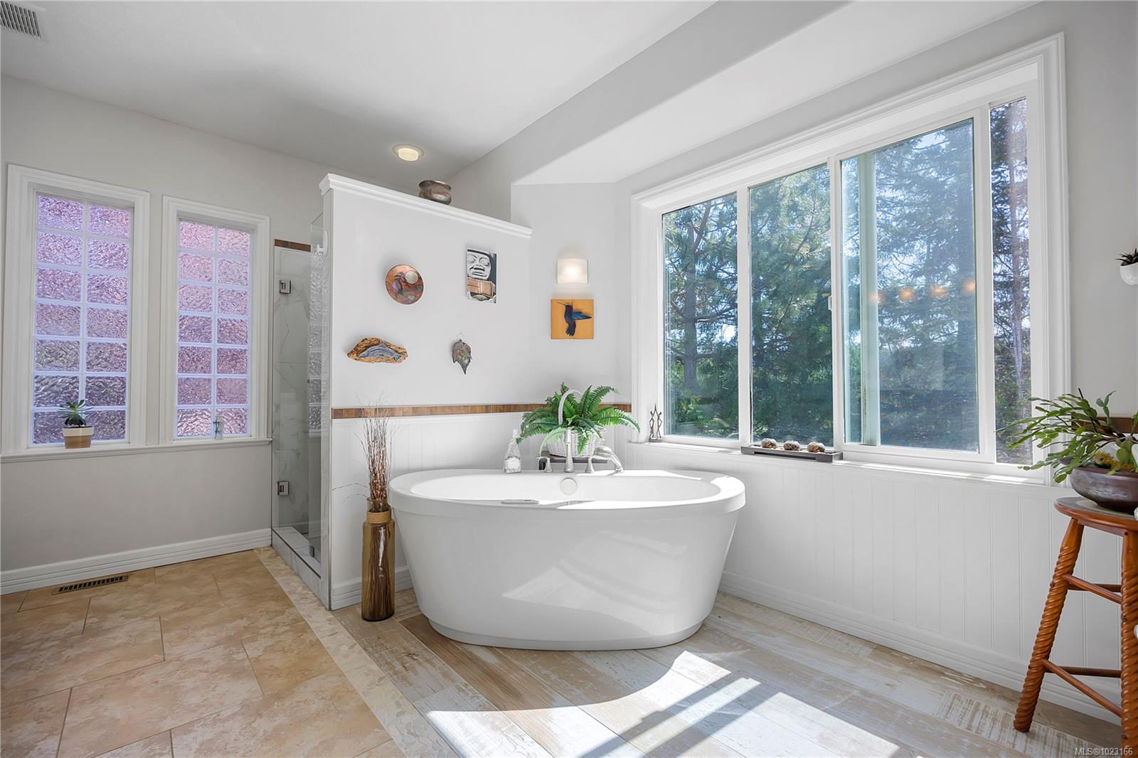 Private Fairwinds home on a quiet cul-de-sac offering the best in main-level living. The open kitchen, dining nook, and family room flow seamlessly to a serene, low-maintenance backyard. An additional formal dining and living room at the front of the home are perfect for family gatherings or entertaining. The spacious primary suite features dual walk-in closets and a spa-inspired ensuite with walk-in shower plus freestanding tub. A second bedroom, full bathroom, office, and laundry room complete the natural light-filled main floor. Downstairs, is a guest-friendly bedroom, with its own full bath,a den, and abundant storage. Additional highlights include a double garage, ample driveway parking, new plumbing, a 50-year metal shingle roof with warranty, and numerous other upgrades. You’ll love calling this home as you enjoy watching the hummingbirds sip from the fountain while the warm breeze stirs the fir trees in this serene oasis in one of the most desirable places to live- beautiful Nanoose bay.